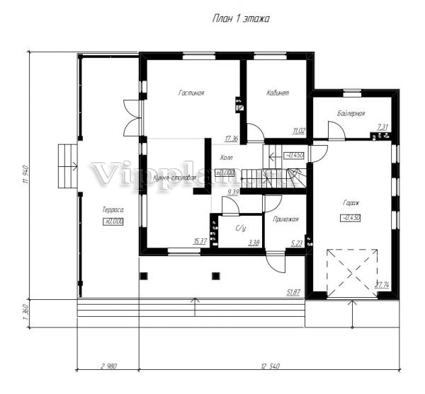 | Размеры дома: | 11.94м×12.54м |