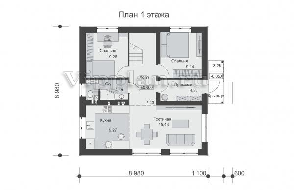 | Размеры дома: | 8.98м×10.08м |